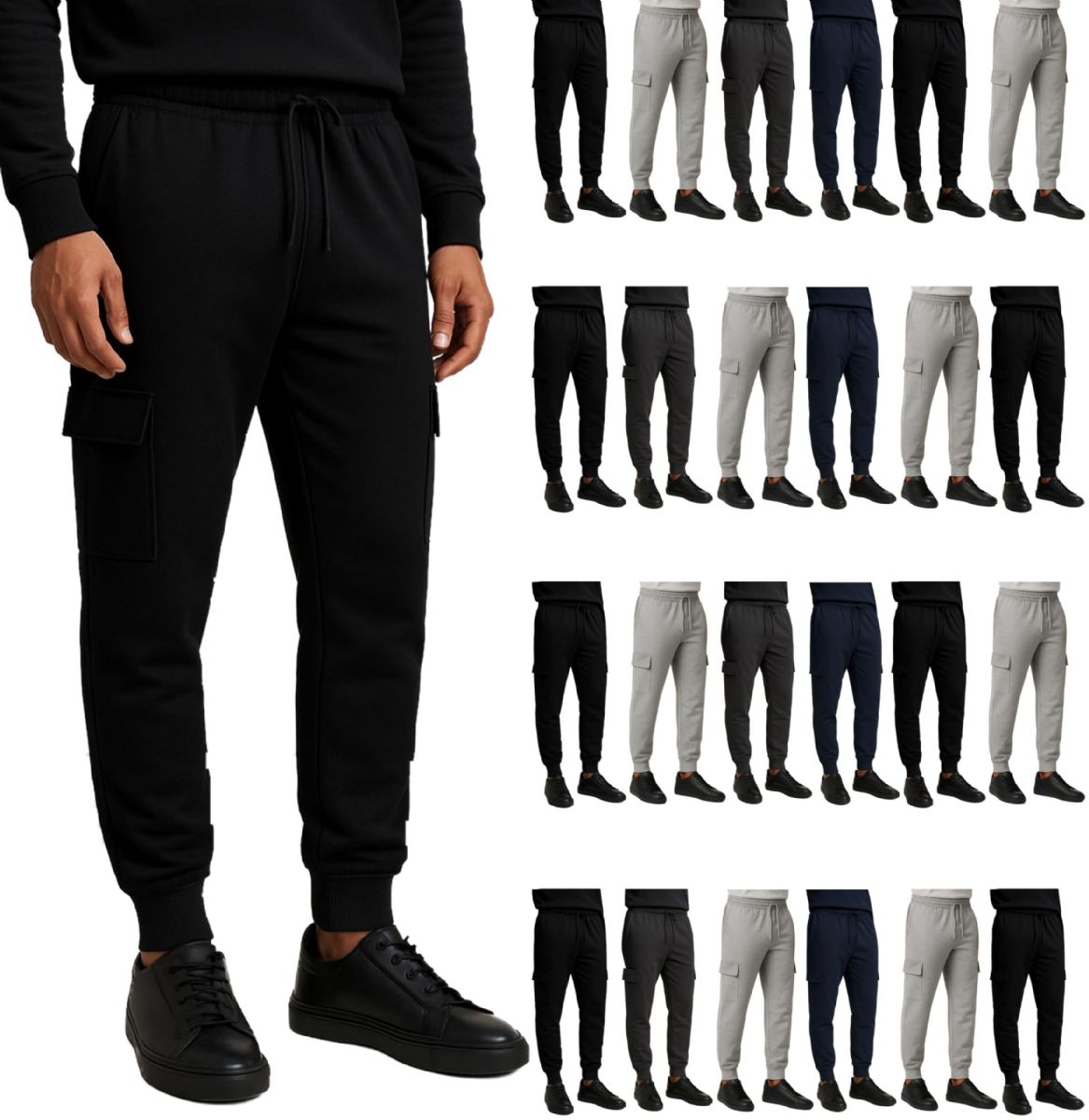 Mens Cotton Fleece Cargo Joggers In Assorted Colors Assorted Sizes S-2xl, 24 Piece(s)