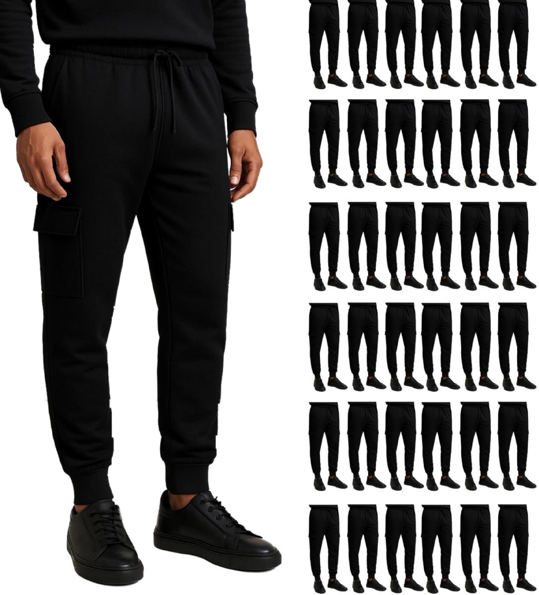 Mens Cotton Fleece Cargo Joggers In Black Assorted Sizes S-2xl, 36 Piece(s)