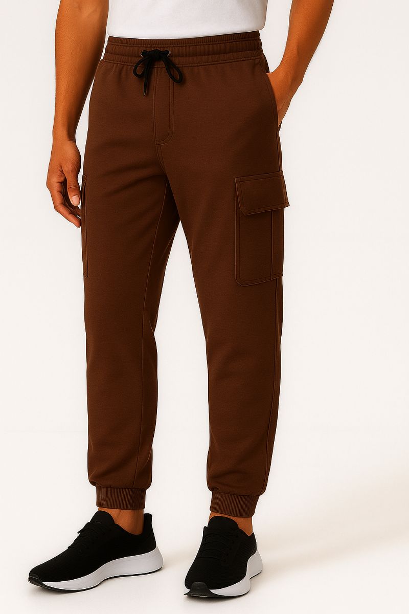 Mens Cotton Fleece Cargo Joggers In Brown Assorted Sizes S-xl