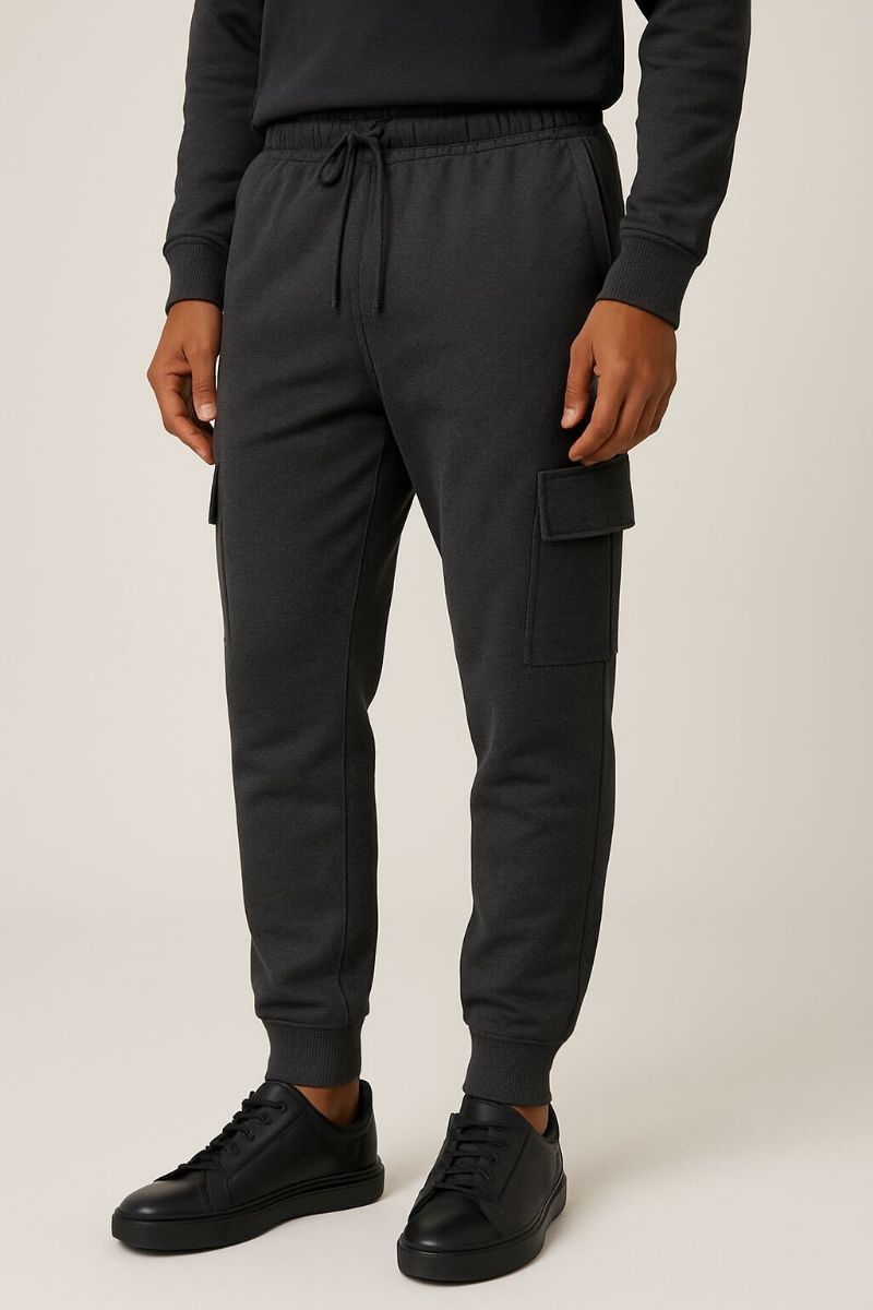 Mens Cotton Fleece Cargo Joggers