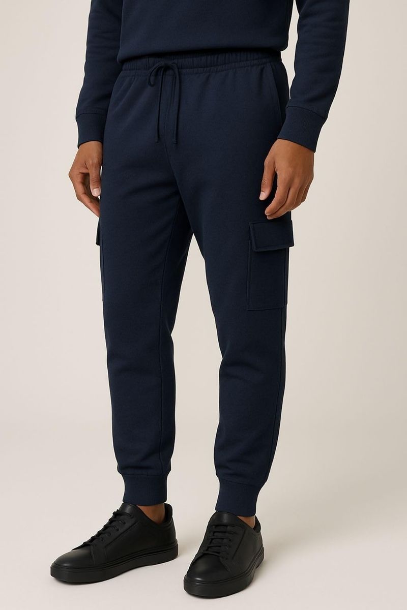 Mens Cotton Fleece Cargo Joggers In Navy Assorted Sizes M-2xl at low wholesale prices. yachtandsmith.com offers Mens Sweatpants at bulk discounted prices.
