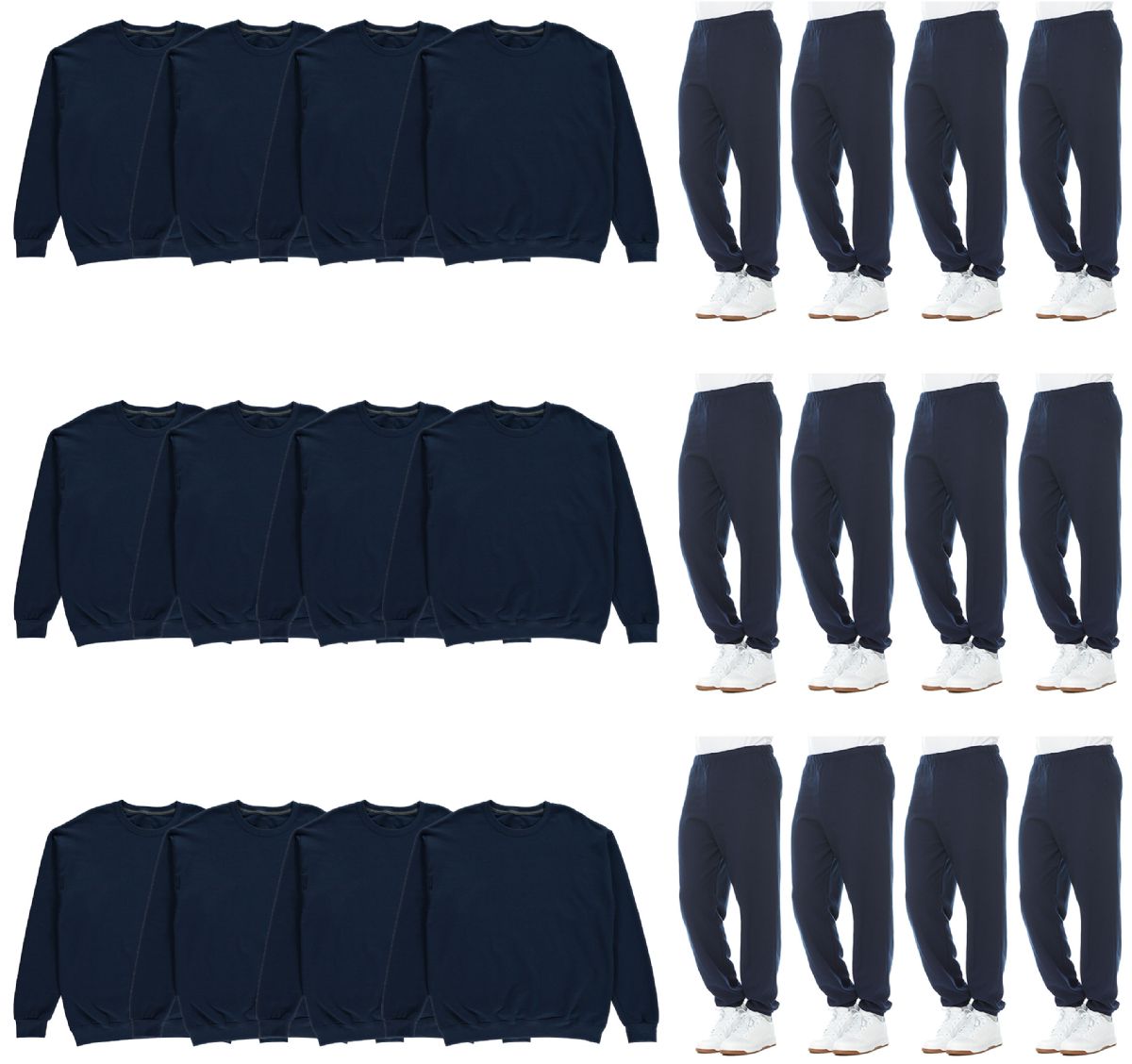 Mens Fleece Cotton Blend 12 Jogger Pants And 12 Crewneck Sweatshirts In Navy Size X-Large, 24 Piece(s)