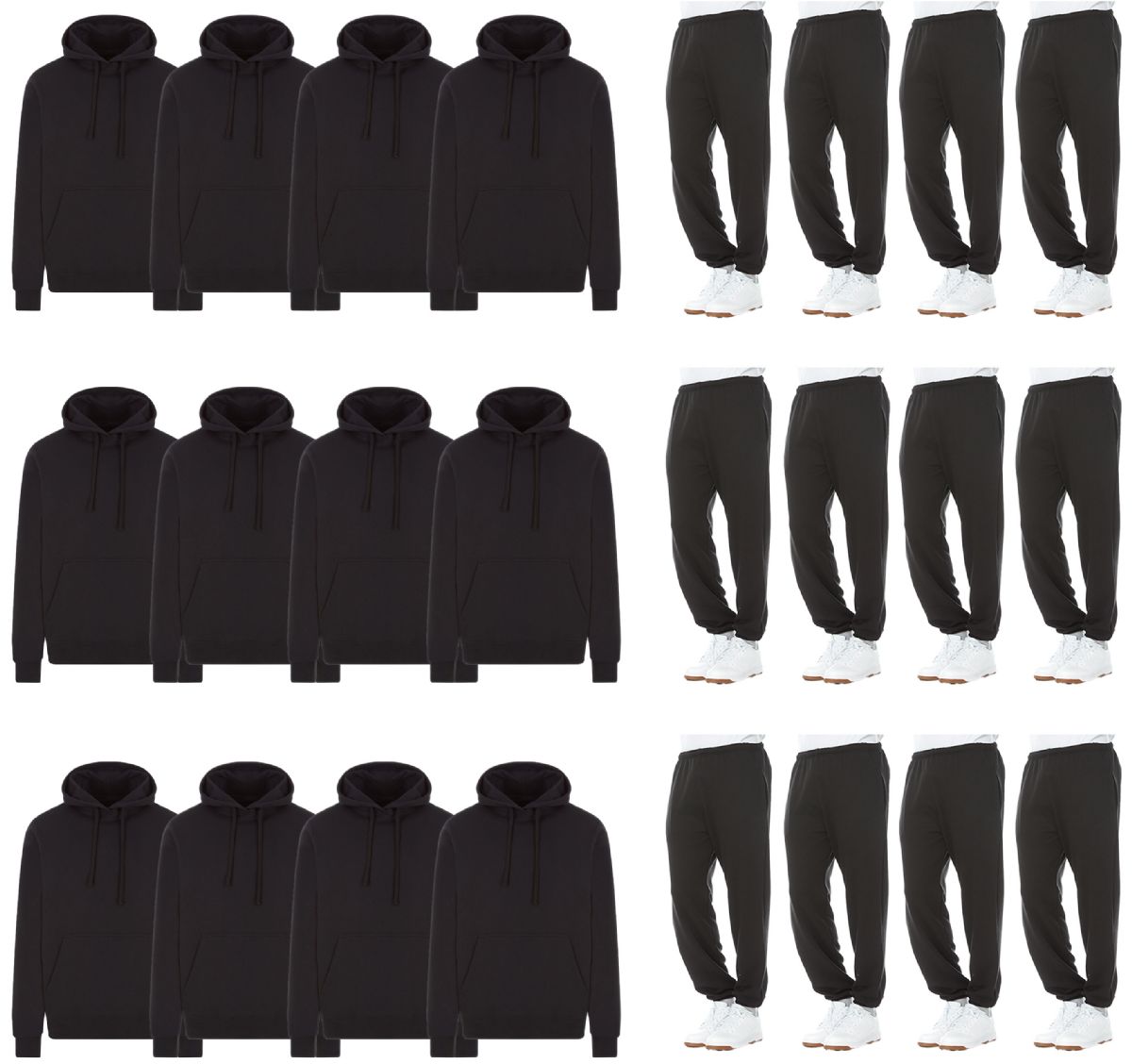 Mens Fleece Cotton Blend 12 Jogger Pants And 12 Hoodies In Black Size Xlarge, 24 Piece(s)