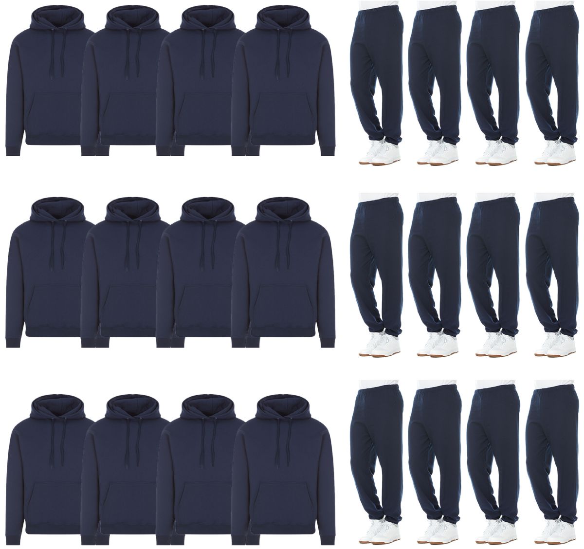 Mens Fleece Cotton Blend 12 Jogger Pants And 12 Hoodies In Navy Size X-Large, 24 Piece(s)