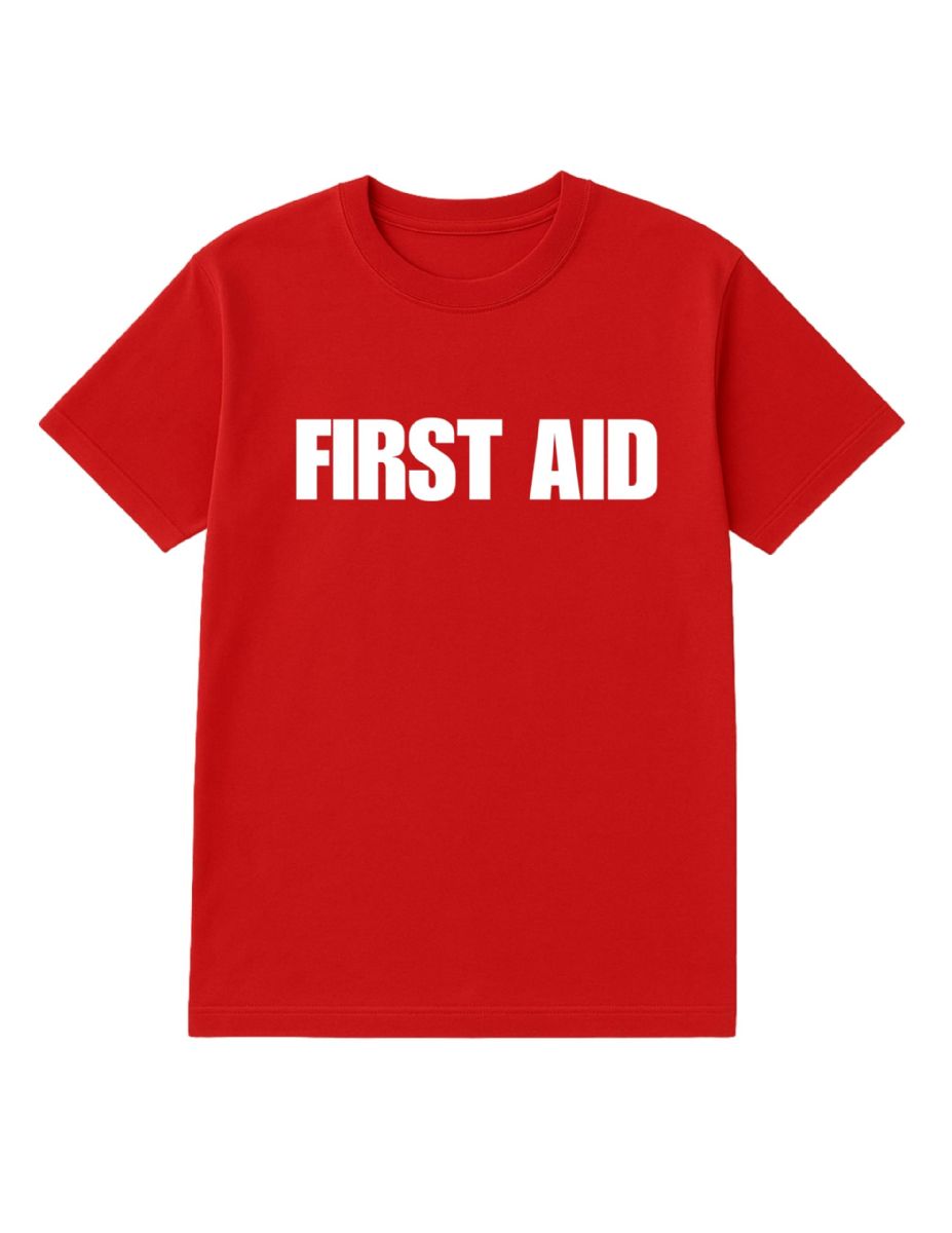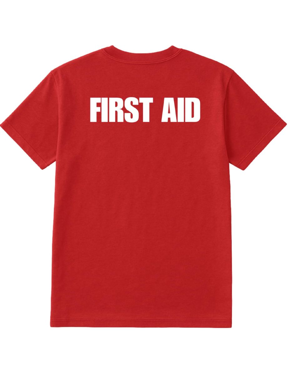 The First Aid T-Shirt is designed for comfortable and durable wear for medical staff. Made from a breathable cotton blend, this red uniform tee is perfect for emergency response and medical staff.