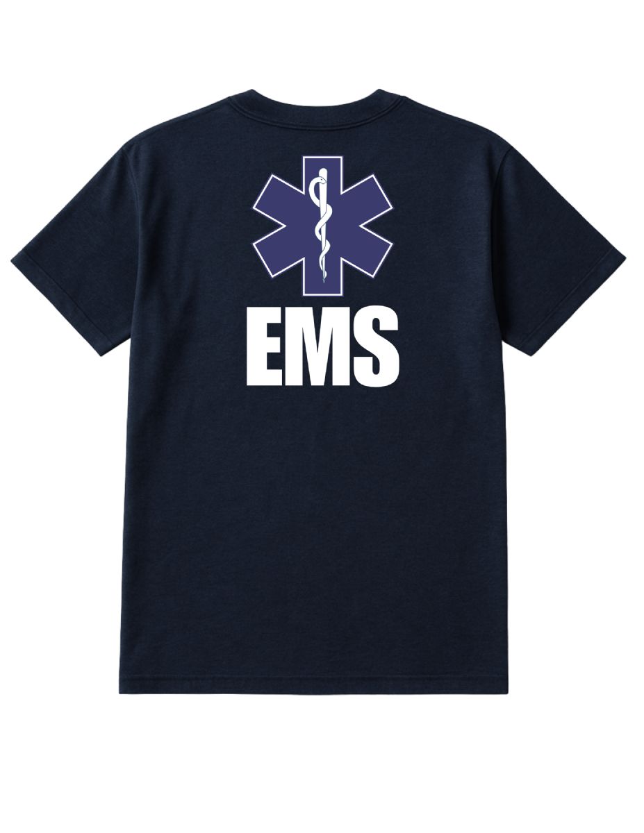 Unisex Cotton Ems Printed T Shirt Navy With White Print Back And Front Size 3X-Large at low wholesale prices. yachtandsmith.com offers Event Personnel Tees at bulk discounted prices.