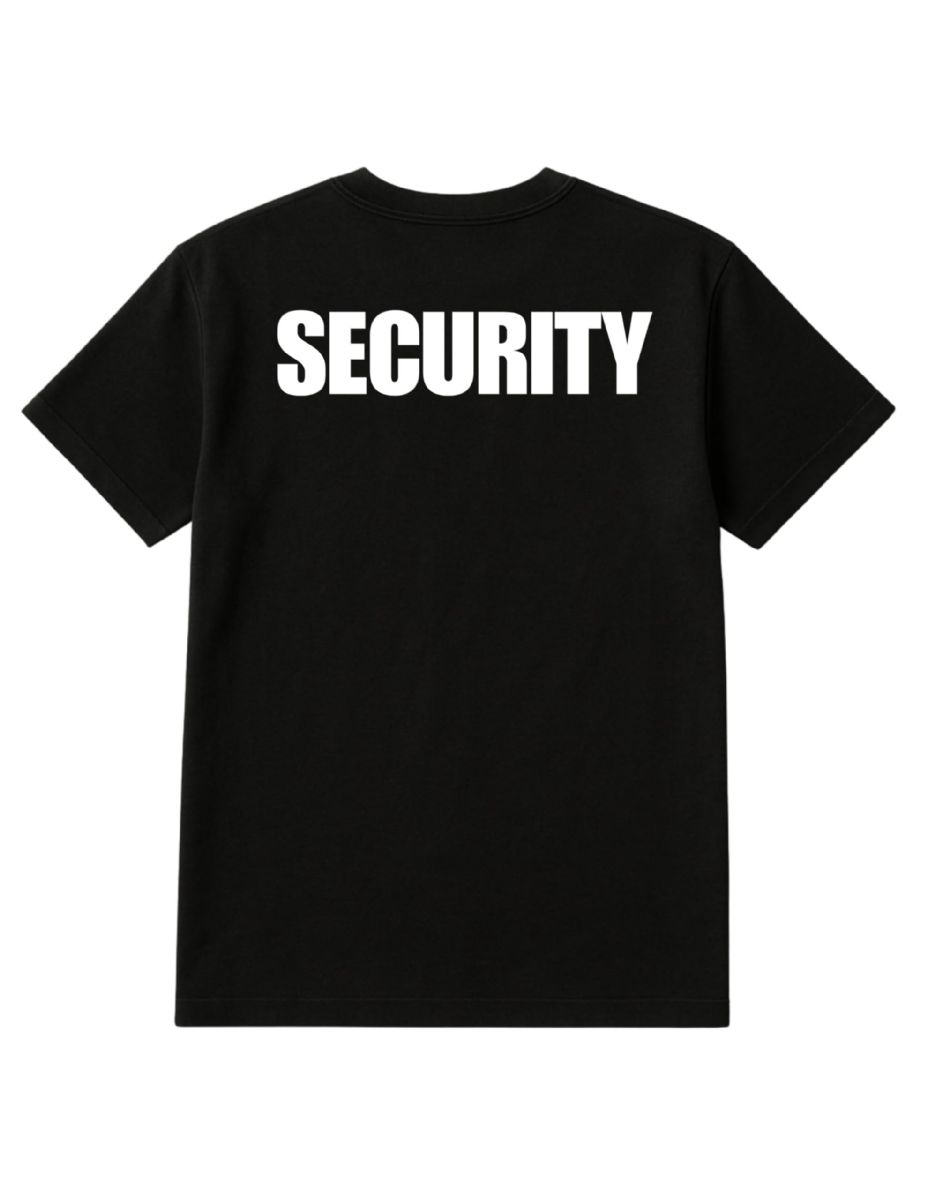 Unisex Cotton Security Printed T Shirt Black With White Print Back And Front Size Large at low wholesale prices. yachtandsmith.com offers Event Personnel Tees at bulk discounted prices.