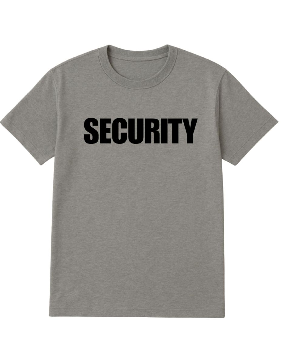 Unisex Cotton Security Printed T Shirt Gray With Black Print Back And Front Size Small at low wholesale prices. yachtandsmith.com offers Event Personnel Tees at bulk discounted prices.