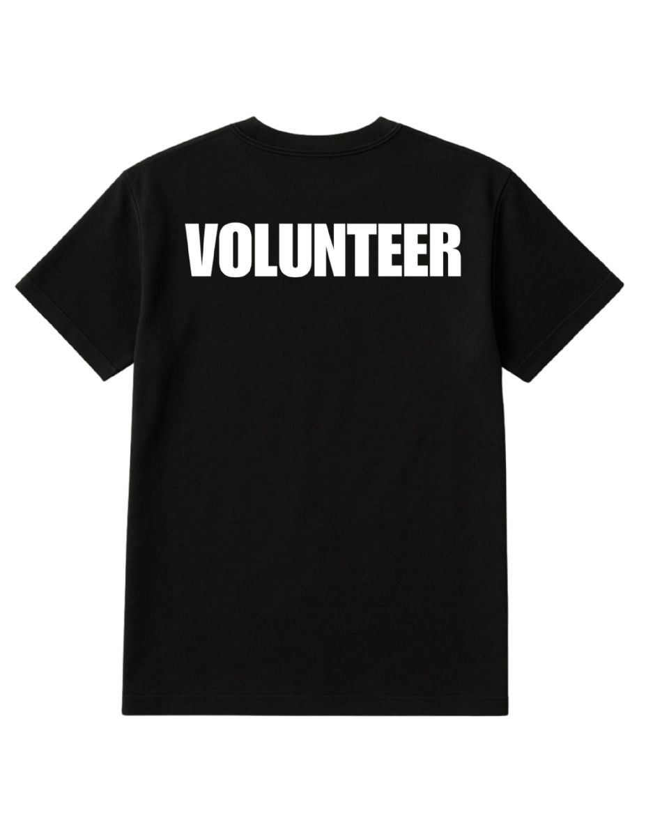 Unisex Cotton Volunteer Printed T Shirt Black With White Print Back And Front Size Xlarge at low wholesale prices. yachtandsmith.com offers Event Personnel Tees at bulk discounted prices.