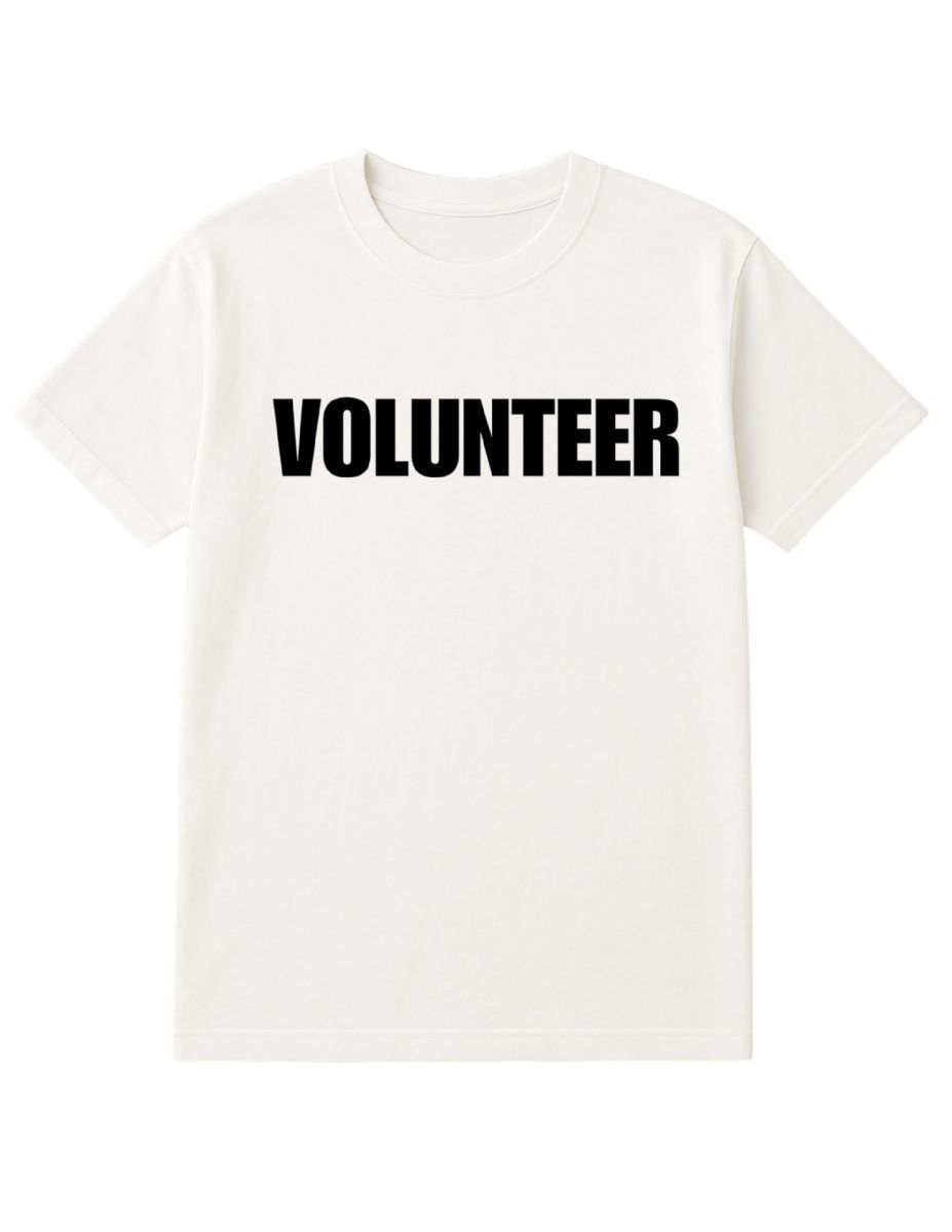 Unisex Cotton Volunteer Printed T Shirt White With Black Print Back And Front Size Medium at low wholesale prices. yachtandsmith.com offers Event Personnel Tees at bulk discounted prices.