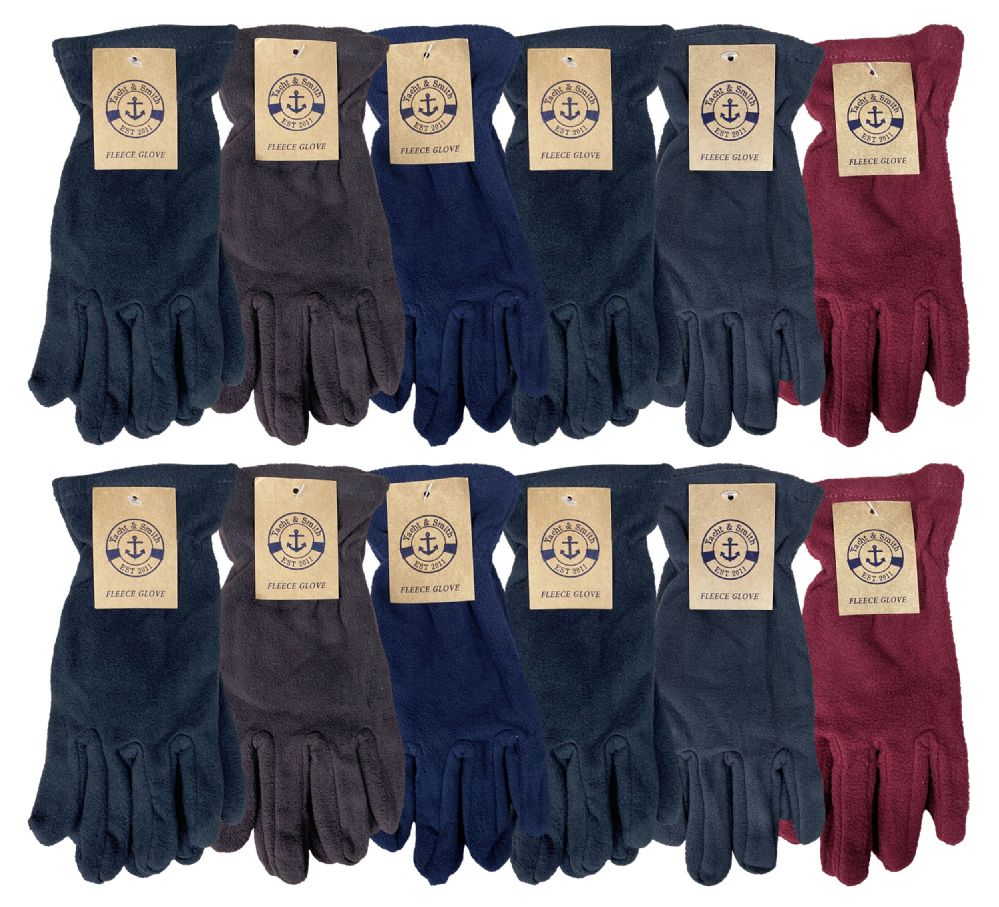 Yacht & Smith Mens Winter Fleece Gloves With Snug Fit Cuff Light Comfortable Weight, 24 Pair(s)